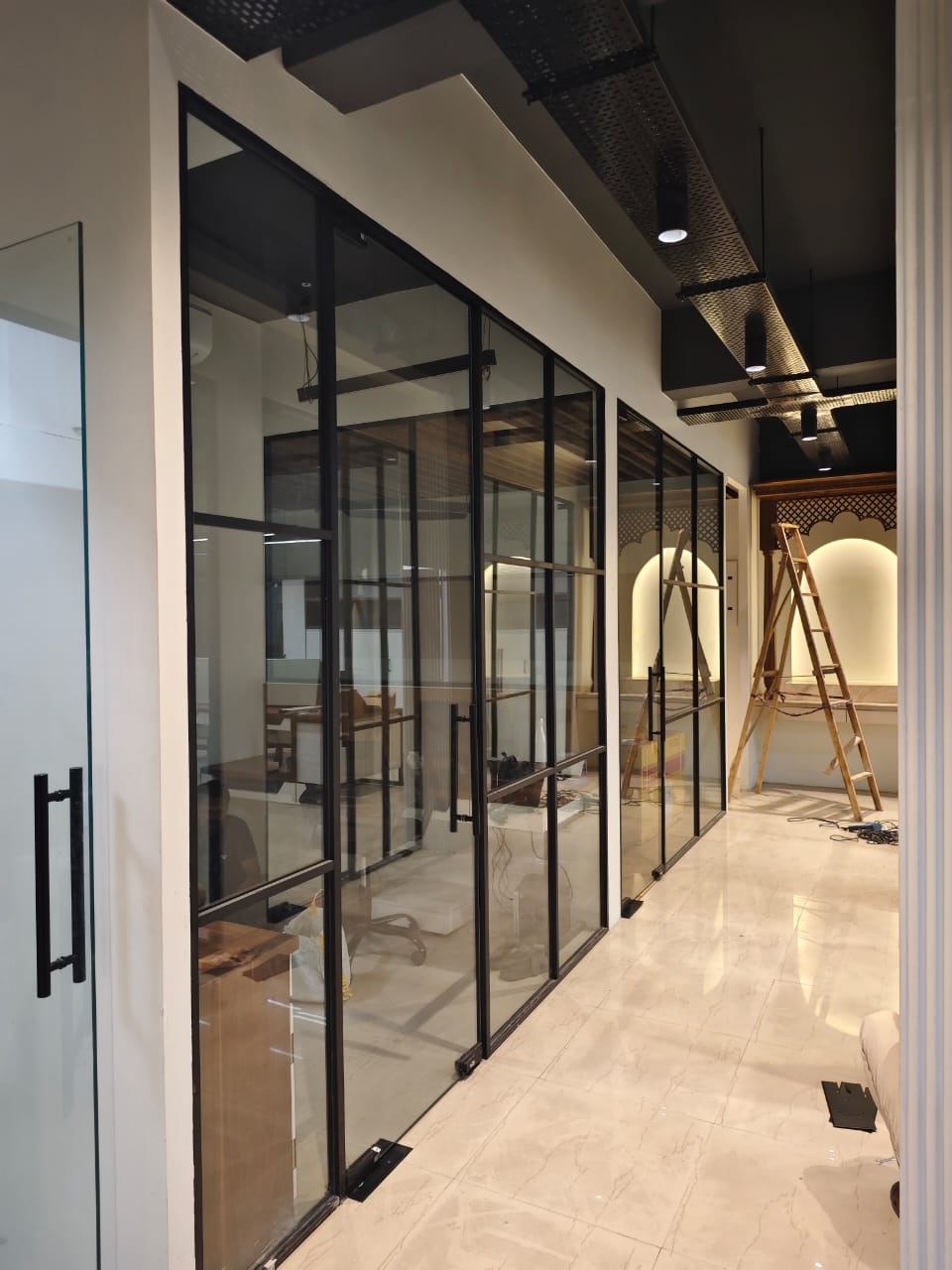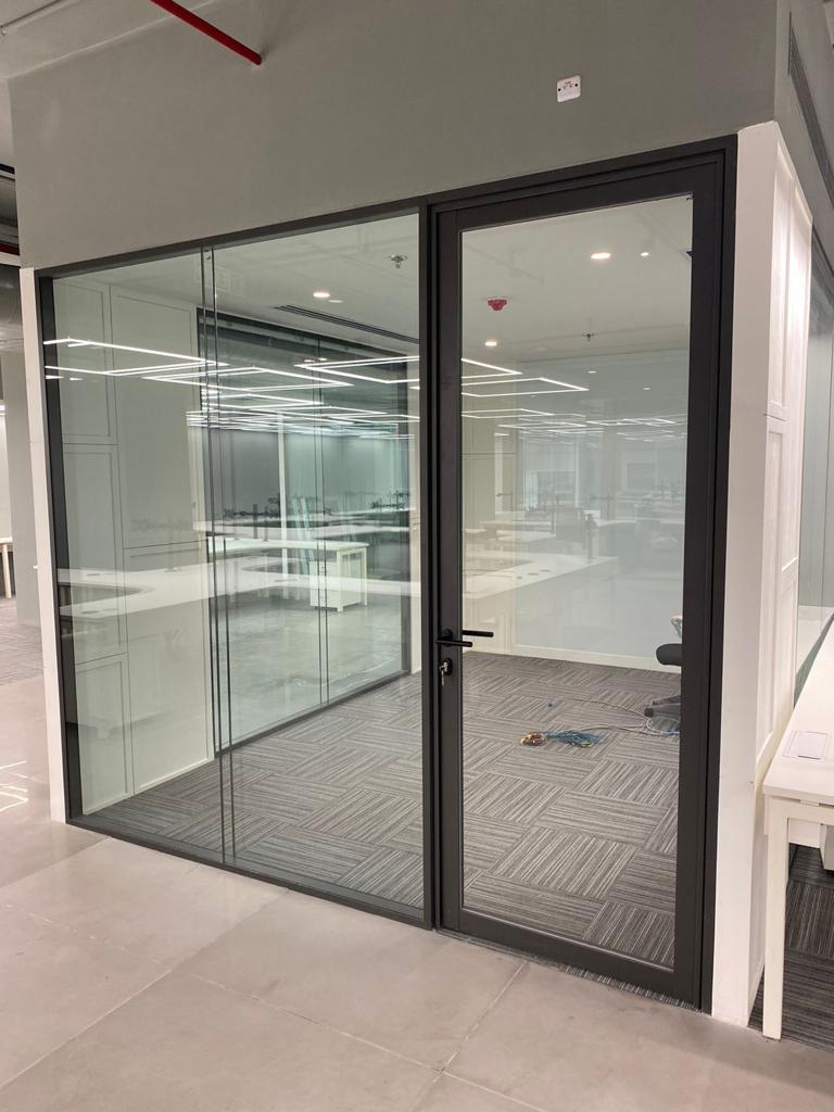 Single-glazed partitions: A cost-effective option for basic space division, these partitions use a single pane of glass within the aluminum frame.
